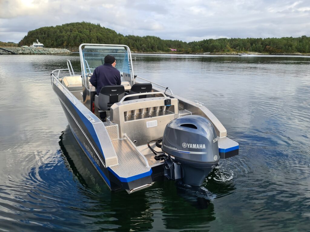 Med sin romslige utforming og trygge skrogkonstruksjon fremstår Kværnø 600 som stødig og forutsigbar på sjøen, også når forholdene blir mer krevende. Den balanserte lengden og bredden gir en stabil plattform både under kjøring og når man beveger seg rundt i båten, noe som gjør den godt egnet for både familieturer og aktiv bruk.