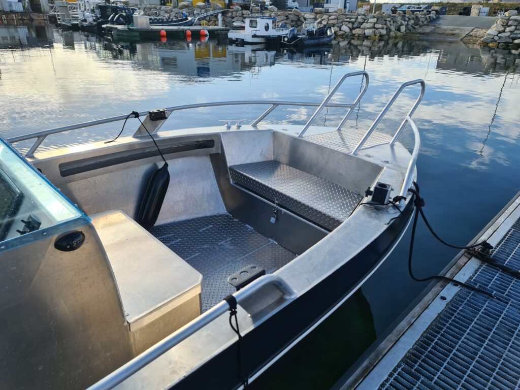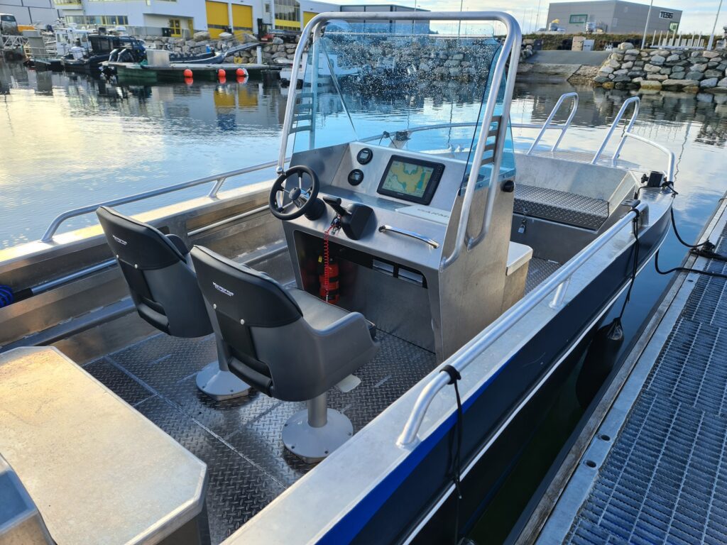 Modellen leveres nå med akterplattformer og integrerte stangholdere som standard. Bakbenken er videreutviklet og boltmontert for å gi en mer åpen dekksløsning, som gir bedre plass til fiske og håndtering av utstyr. Ønskes ytterligere fleksibilitet kan bakbenken erstattes med klappstoler, eller fjernes helt for maksimal dekksplass akter. For ekstra stor dekksflate i baugen kan konsollen flyttes lenger akter, med stoler montert på en tilpasset bakbenk eller på gassdempende stolsøyler. Dette gir en svært romslig og funksjonell dekksløsning, tilpasset både fiske, transport og aktiv bruk.Allroundfavoritt (fiske/turbåt) En rimelig båt i sin klasse, gode sjøegenskaper, stødig.