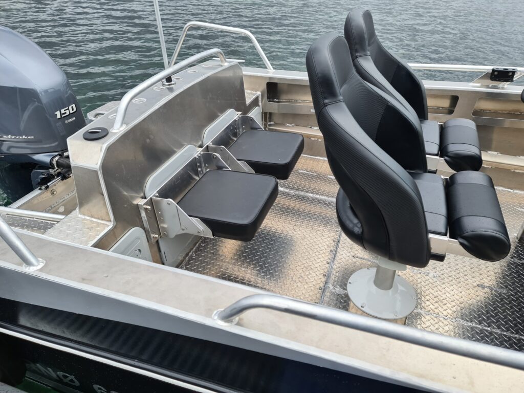 Modellen leveres nå med akterplattformer og integrerte stangholdere som standard. Bakbenken er videreutviklet og boltmontert for å gi en mer åpen dekksløsning, som gir bedre plass til fiske og håndtering av utstyr. Ønskes ytterligere fleksibilitet kan bakbenken erstattes med klappstoler, eller fjernes helt for maksimal dekksplass akter. For ekstra stor dekksflate i baugen kan konsollen flyttes lenger akter, med stoler montert på en tilpasset bakbenk eller på gassdempende stolsøyler. Dette gir en svært romslig og funksjonell dekksløsning, tilpasset både fiske, transport og aktiv bruk.