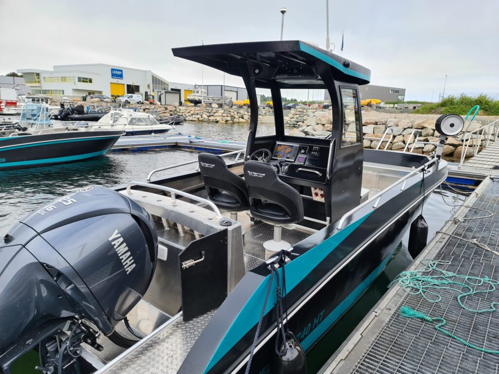 Det store dekket gir trygge arbeidsforhold om bord. Høye rekker, kraftige rekkerør og selvlensende dekk understreker båtens robuste karakter og gir trygg ferdsel – både under transport og når båten ligger stille i sjøen. Med sin romslige og fleksible utforming fungerer 740 HT like godt som turbåt, fiskebåt og solid arbeidsbåt. God plass til passasjerer og utstyr, kombinert med stødig gange og hardtoppens beskyttelse, gir deg friheten til å bruke båten når du vil – i sol, vind og røffere forhold.